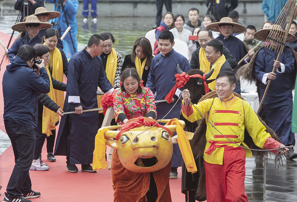 “金牛闹春祈福”一直是每年元通清明会的重头戏,今年保留了下来,祈福仪式分为请神祈福、迎神受福和送神谢福等部分。以往热闹的清明会祭祀活动,今天在元通塔下封闭举行,作为传承农耕文化的传统盛会,清明会再现了古时川西平原复耕复产的盛况,象征着一年春耕的开始。