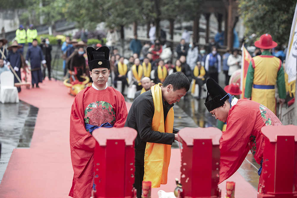 崇州市文化学者刘旭东介绍,“今年在新冠疫情这个背景下,我们采用这种传统的先农和社稷的祭祀仪式,来开展金牛祈福,先农(祭祀),其实是用传统的方式,来复耕复产,来推动全市广大农民开展春耕的信心。”