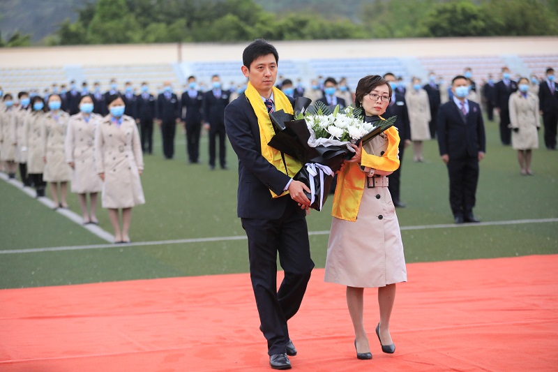 四川新闻网成都4月4日讯 为表达全国各族人民对抗击新冠肺炎疫情斗争牺牲烈士和逝世同胞的深切哀悼,4月4日,我国举行了全国性哀悼活动。在此期间,全国和驻外使领馆下半旗致哀,全国停止公共娱乐活动。今日10时起,全国人民默哀3分钟,汽车、火车、舰船鸣笛,防空警报鸣响。四川西南航空职业学院全体复工返校教师,在做好防护和保证安全的前提下,对抗击新冠肺炎疫情斗争牺牲烈士和逝世同胞以及西昌森林火灾中牺牲的英雄表达深切哀悼,并举行了清明祭祀仪式,以祭祀祖先、缅怀先烈。