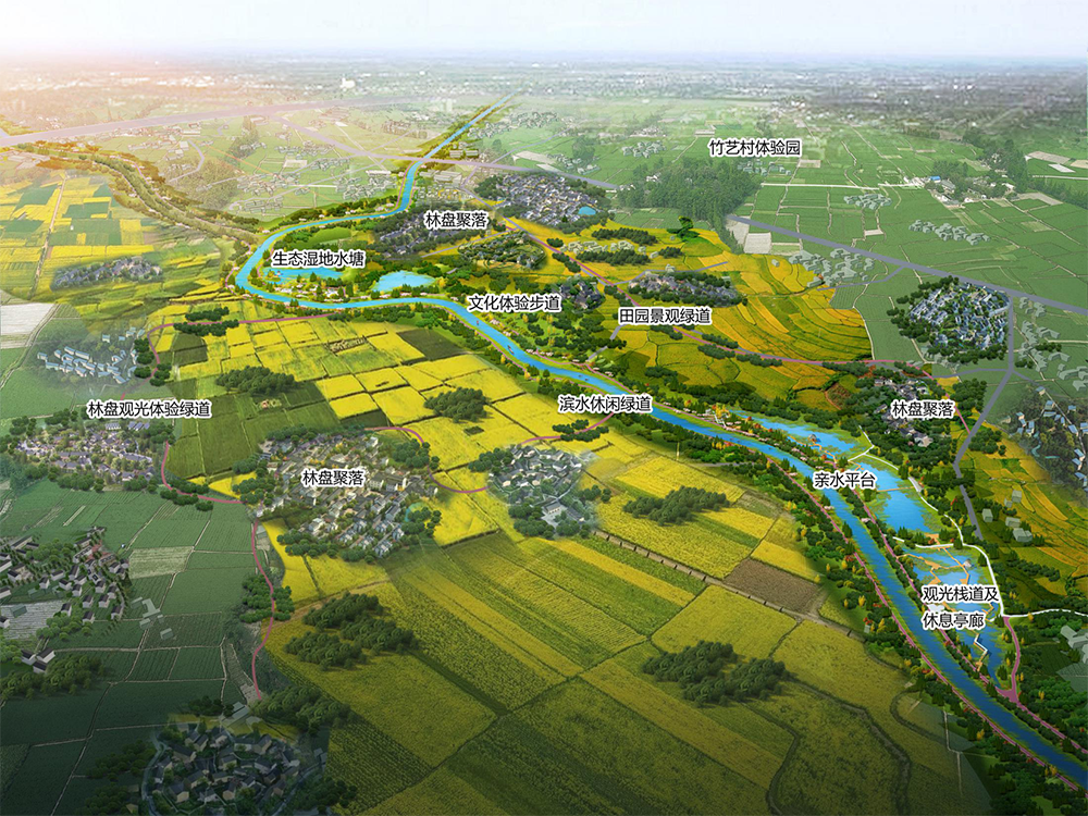 近年来,崇州市坚持公园城市的乡村表达,着力打造大美乡村田园样板区,努力形成一个农商文旅体的深度融合的田园综合体。既有山水林田湖的自然肌理,也有人类生产消费的场景植入,既承载乡野农夫农业生产的基础功能,也催生城市休闲旅游的时代风尚。建成了两个万亩湿地公园;修建了60多公里乡村绿道;还串联起了100公里的乡村旅游环线。涌现出了竹艺村、严家弯湾、凡朴生活等一批网红打卡林盘。此次成功入围水系连通及农村水系综合整治试点县,对我们影响巨大,崇州市水务局党组成员、副局长常敏介绍,此项工作既有利于联动崇州全市公园城市建设,转化水生态价值,又进一步串联了全市川西旅游环线若干重要旅游节点。“这也为崇州全市进一步打造生态和旅游提供了强有力的支持。”