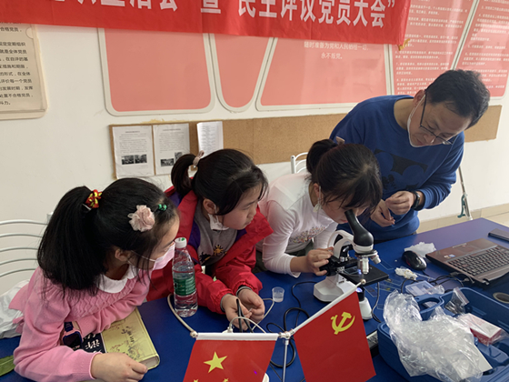 4月20日,三瓦窑社区组织辖区居民儿童开展儿童阅读分享活动,小朋友们分享假期读物、假期生活,相互交流《水浒传》、《阿波罗登月》等自己读过的优秀作品。有的小朋友还将显微镜带到现场,与大家一同观察使用,分享书籍的同时,也分享科学、分享求知,分享了疫情期间支持防疫的一点一滴。