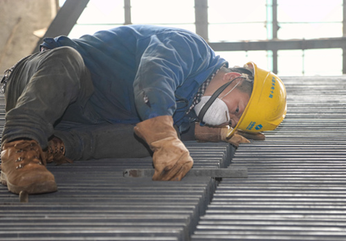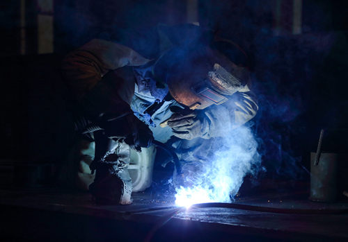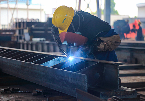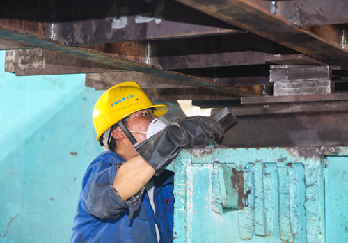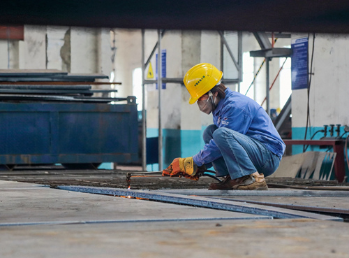聚焦——工作人员正在对制作的江西万安船闸埋件进行焊接