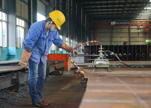 专注——金属结构厂生产车间,工作人员正在忙碌