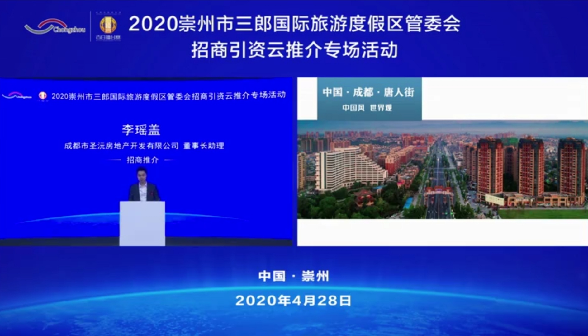 此次2020崇州市三郎国际旅游度假区管委会招商引资云推介专场活动采取视频直播的形式,面向葛洲坝集团、中景集团、百悦集团、上海复星集团、途牛科技等全国各地的100余家商业、商贸、金融等行业重点龙头企业代表及投资人推介,聚焦崇州康养旅游发展重点,以投资促进全域旅游发展为目的,进一步提升旅游度假区“亲商、重商、优商”的营商环境,寻求更多资源集聚,形成可持续、高质量的发展模式。截至当日12时,在线浏览观看推介会达10余万人次。