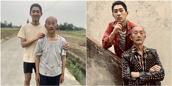 四川西南航空职业学院飞机机电设备专业的许宸滔,给爷爷扮上了自己最喜欢的朋克风,带铆钉的皮夹卡、迷彩裤、沙漠靴,朴实的爷爷瞬间变成了“老牛仔”,很有点佐罗的样子。许爷爷对这一身装扮也是十分满意,直说:“没想到老了我还能这么帅。”据许宸滔介绍,许爷爷一辈子都在种田,生活很朴素,最开始让许爷爷穿上服装他还觉得难为情。“在拍摄的过程中我一直在逗他笑,教他摆动作。”