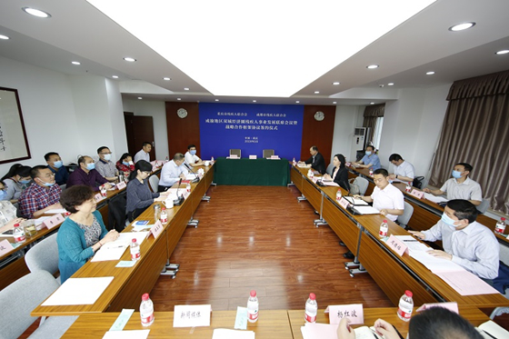 重庆市残疾人联合会相关负责人、直属事业单位负责人,成都市残疾人联合会相关负责人参加签约仪式。(张进春)