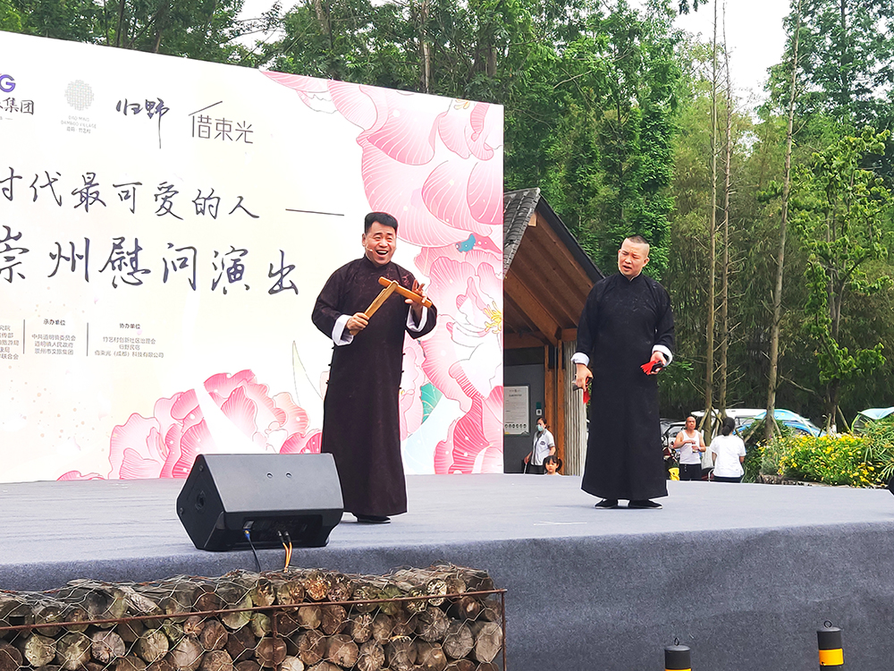 四川新闻网成都5月16日讯 5月16日,一场“致敬新时代最可爱的人”为主题的慰问演出活动在崇州市竹艺村举行,崇州市11名驰援湖北的逆行英雄和省、成都市29名坚守一线的医护人员代表到现场观看。
