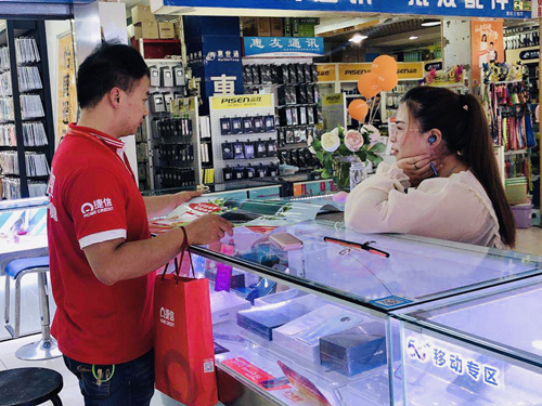 宜宾分众商业街佳语店成立于2016年,作为一家入驻手机卖场的小微商户,负责人严女士在2018年底与捷信合作,今年4月初,在捷信销售人员的推动下,严女士的商铺正式引入ALDI2.0模式,开始探索“线上线下”的新零售模式。