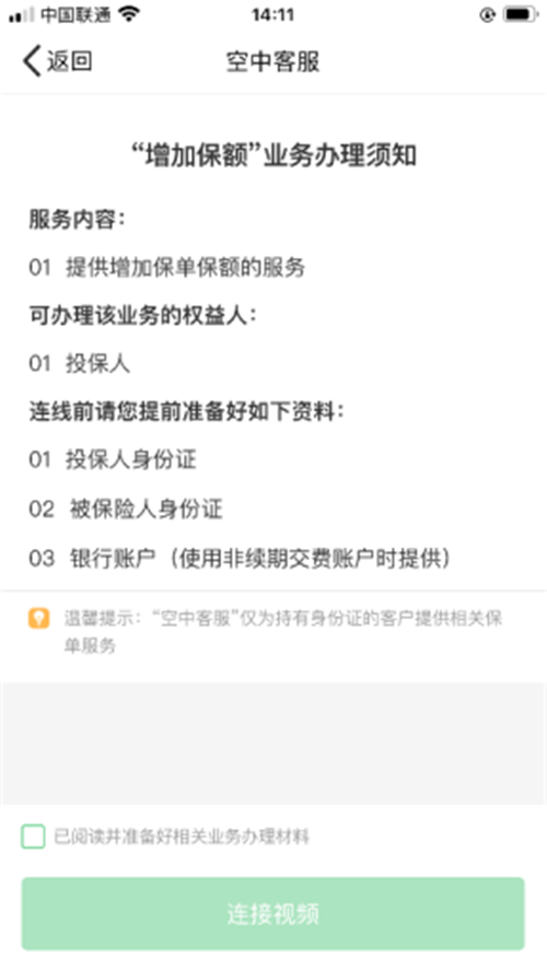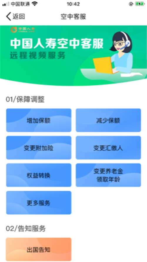 与此同时,公司率先在湖北等疫情严重区域推出“空中客服”(如图5所示),将互联网视频、人脸识别等智能技术集成到公司与客户“面对面”场景中,客户可随时随地登录寿险App一键联通全国3000多个柜面,与上万名客服人员“面对面”交流,有效解决了疫情期间客户无法抵达柜面的问题,实现线上线下一致的客户服务体验。“空中客服”开创了线上服务的新方式,加速推动了公司客户服务数字化转型。