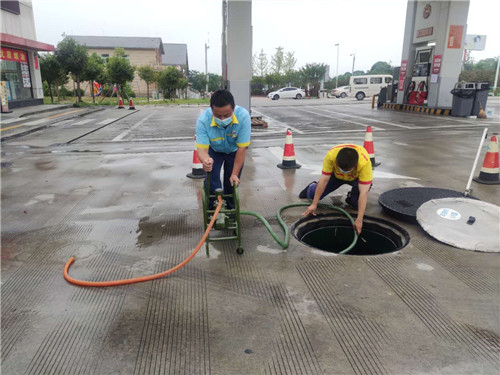 金堂服务区加油站建成年份较早,由于地形构造、技术支撑、施工工艺等多方面原因,该站点的16口操作井容易积水。如果不及时维护保养,极易导致油罐表层被腐蚀、水位过高后油罐进水等严重安全问题。