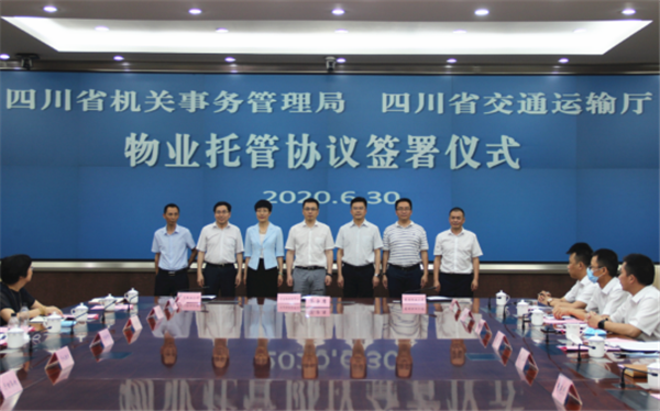 四川新闻网成都7月7日讯 6月30日,四川省交通运输厅与省机关事务管理局举行物业托管协议签署仪式,交通运输厅将其下属四川惠友物业管理有限责任公司(简称“惠友物业”)全面托管给省机关事务管理局下属四川蜀府物业服务有限责任公司(简称“蜀府物业”),借助蜀府物业先进的管理理念、完善的标准体系、智能化的管理手段、专业化的人才团队,推动交通运输厅物业服务水平提档升级。这是继交通运输厅将其下属公路局医院托管给省人民医院后,再次运用托管这一创新模式弥补自身短板,也是落实交通运输厅和省机关事务管理局主要领导今年3月份座谈会议精神的重要举措。交通运输厅党组成员、副厅长张勇,省机关事务管理局党组成员、副局长李练,省交战办主任、交通运输厅高管局局长刘洁梅及有关部门负责人出席签约仪式。刘洁梅主持并在签约仪式上介绍了物业托管的基本情况,李练和张勇发表了讲话。