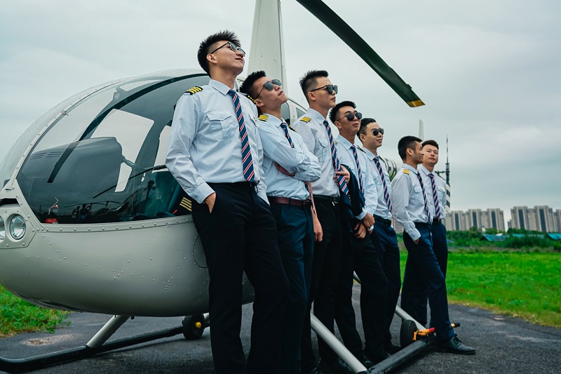 在四川西南航空职业学院无锡泛美通航训练基地,18名飞行员身着统一的制服,阳光帅气。据悉,他们中的大部分人都已经考取了获得直升机驾驶私商照,“拍摄毕业照不仅仅是为了纪念美好青春时光,也是对未来的美好期许。向‘英雄机长’致敬,努力做一名合格的飞行员。”飞行员刘湘说道。