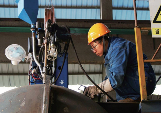 在钢结构件焊接过程中,何丽提出了用二氧化碳气保焊代替焊条电弧焊作业的建议,并亲自试验。试验成功后,该焊接方法在全公司推广,焊接工作效率最高可提高 4 倍,焊接能耗大幅降低,比焊条电弧焊节电超过 50%,同时减轻了焊工的劳动强度。实验成果显示,在大型钢结构的焊接中,使用二氧化碳气保焊可实现减少焊缝接头,对钢结构的焊接质量提高起到很大的作用。如今,在国鑫公司,二氧化碳气保焊已经完全代替了焊条电弧焊作业。