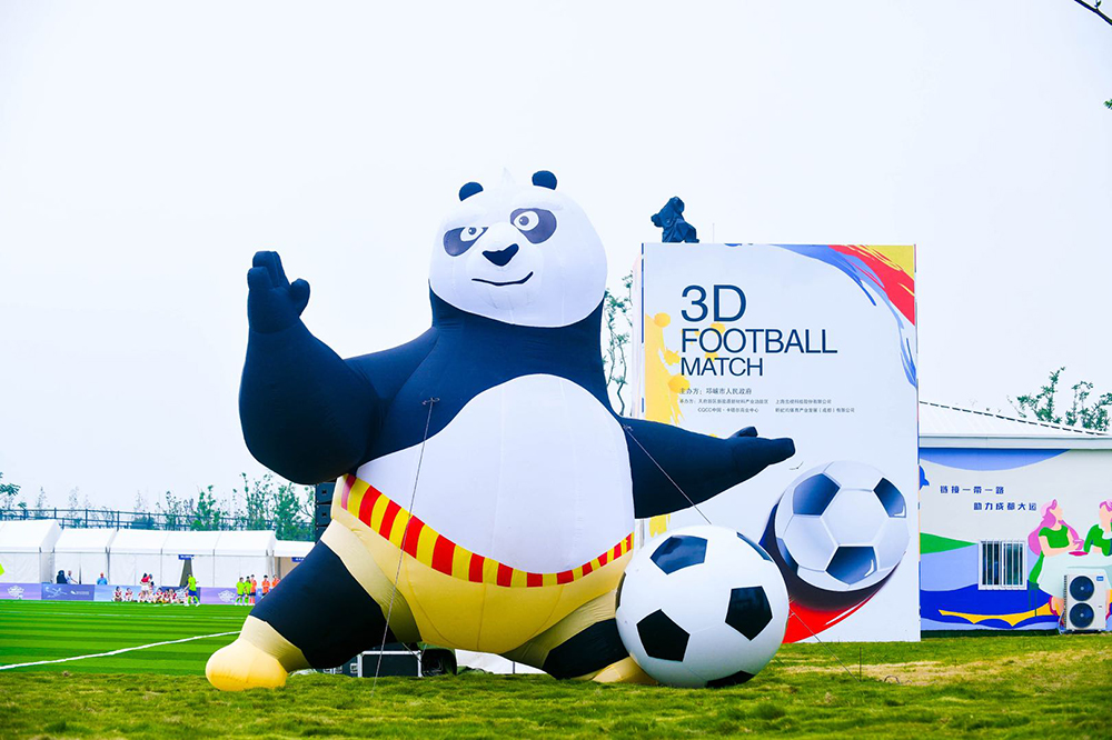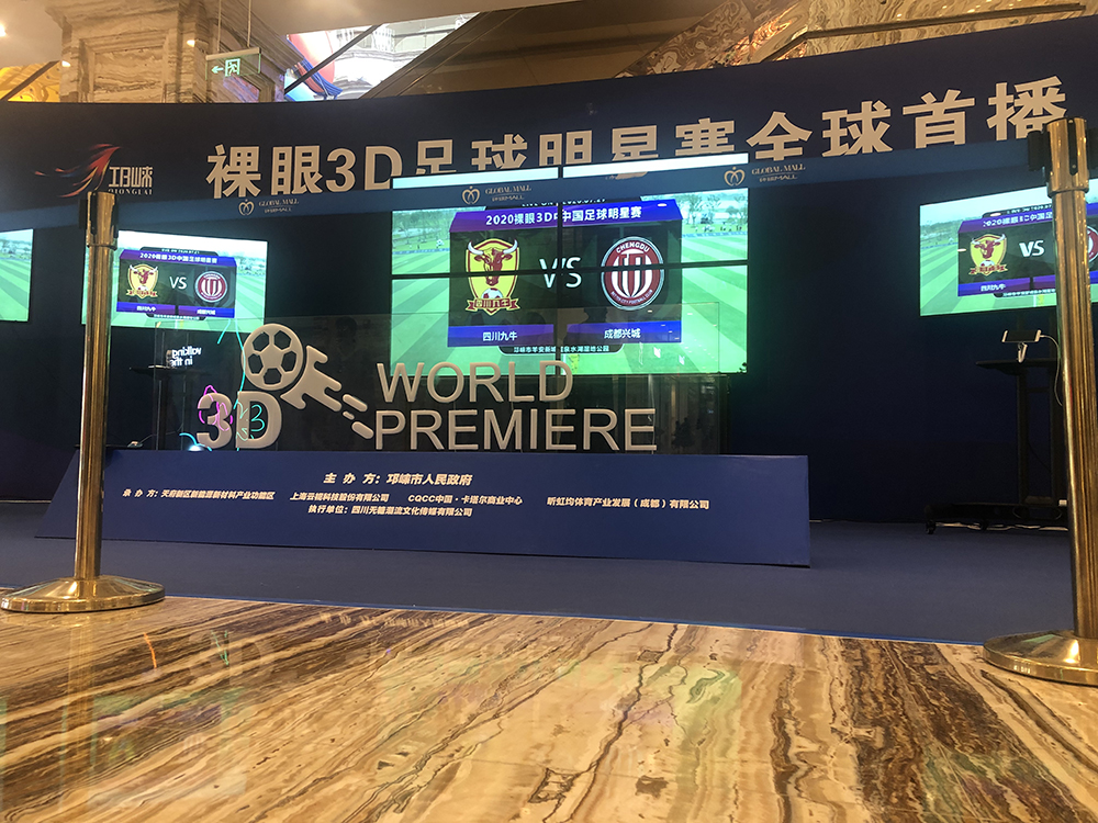 本次活动邀请了成都兴城俱乐部、成都九牛俱乐部两支中甲球队进行了表演赛,并在全球首次通过裸眼3D技术对足球赛事进行全球直播。