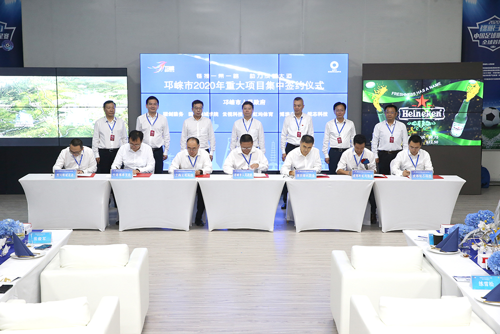 四川新闻网成都7月22日讯 7月21日,裸眼3D中国足球明星赛全球首播暨邛崃市2020年重大项目集中签约仪式在邛崃市天府新区新能源新材料产业功能区泉水湖湿地公园隆重举行。