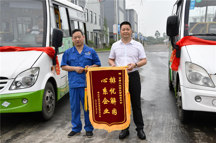 四川新闻网成都7月23日讯 7月10日上午,眉山方大公交站开通并投入试运行。开通仪式上,为感谢甘眉工业园区管理委员会、眉山市展通公交客运有限公司给予的大力支持与帮助,眉山方大蓉光炭素有限责任公司董事长衷金勇先后向甘眉工业园区管理委员会、眉山市展通公交客运有限公司赠送锦旗。