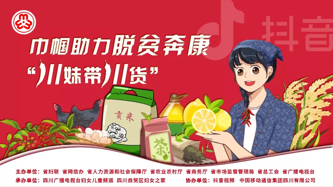 为携手共销妇字号川字号产品,助力决战决胜脱贫攻坚,7月24日,由四川省妇女联合会、四川省互联网信息办公室、四川省人力资源和社会保障厅、四川省农业农村厅、四川省商务厅、四川省市场监督管理局、四川省总工会、四川广播电视台主办的“巾帼助力脱贫奔康·川妹带川货”直播带货活动,将在四川广播电视台震撼开幕。