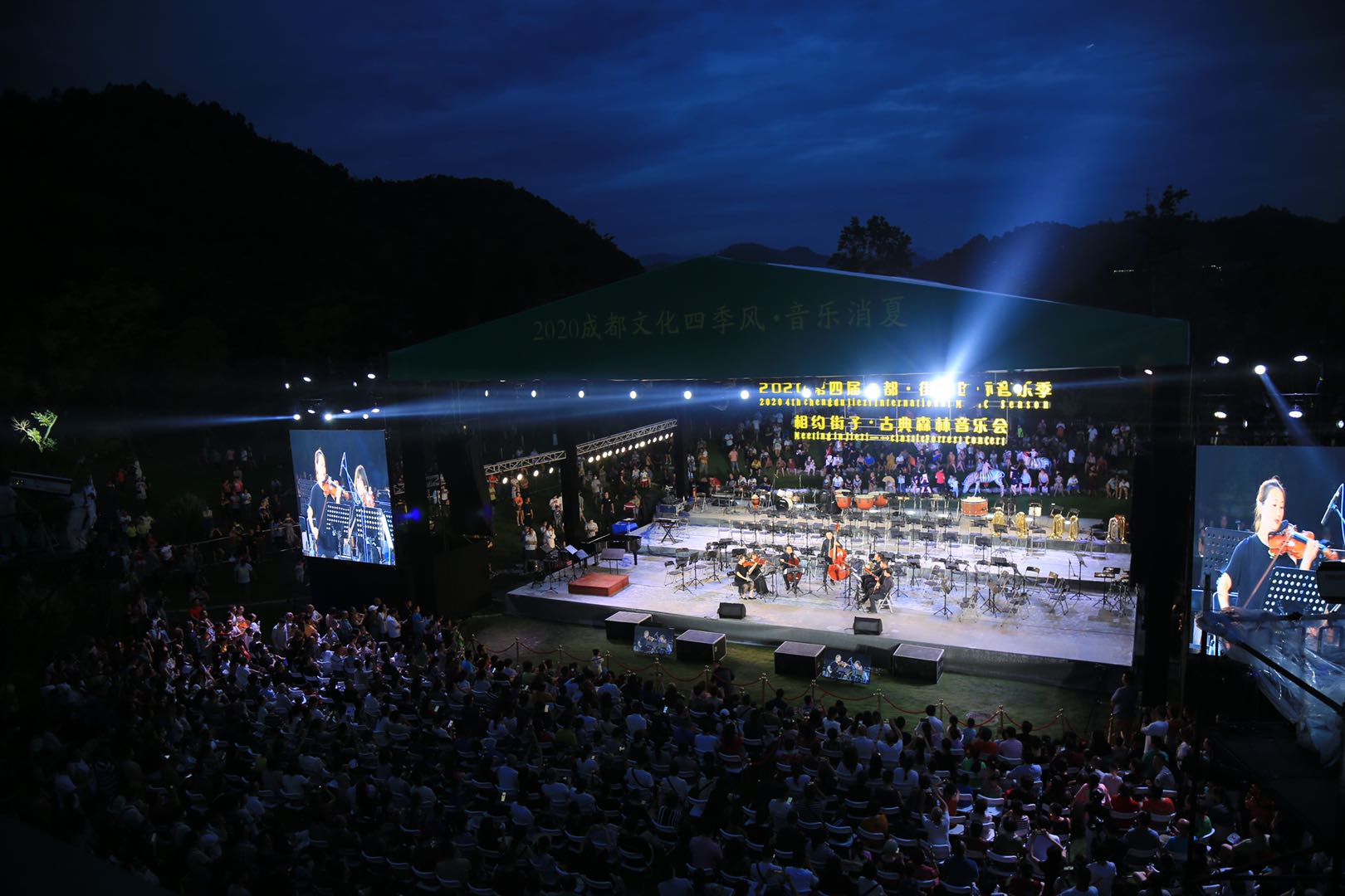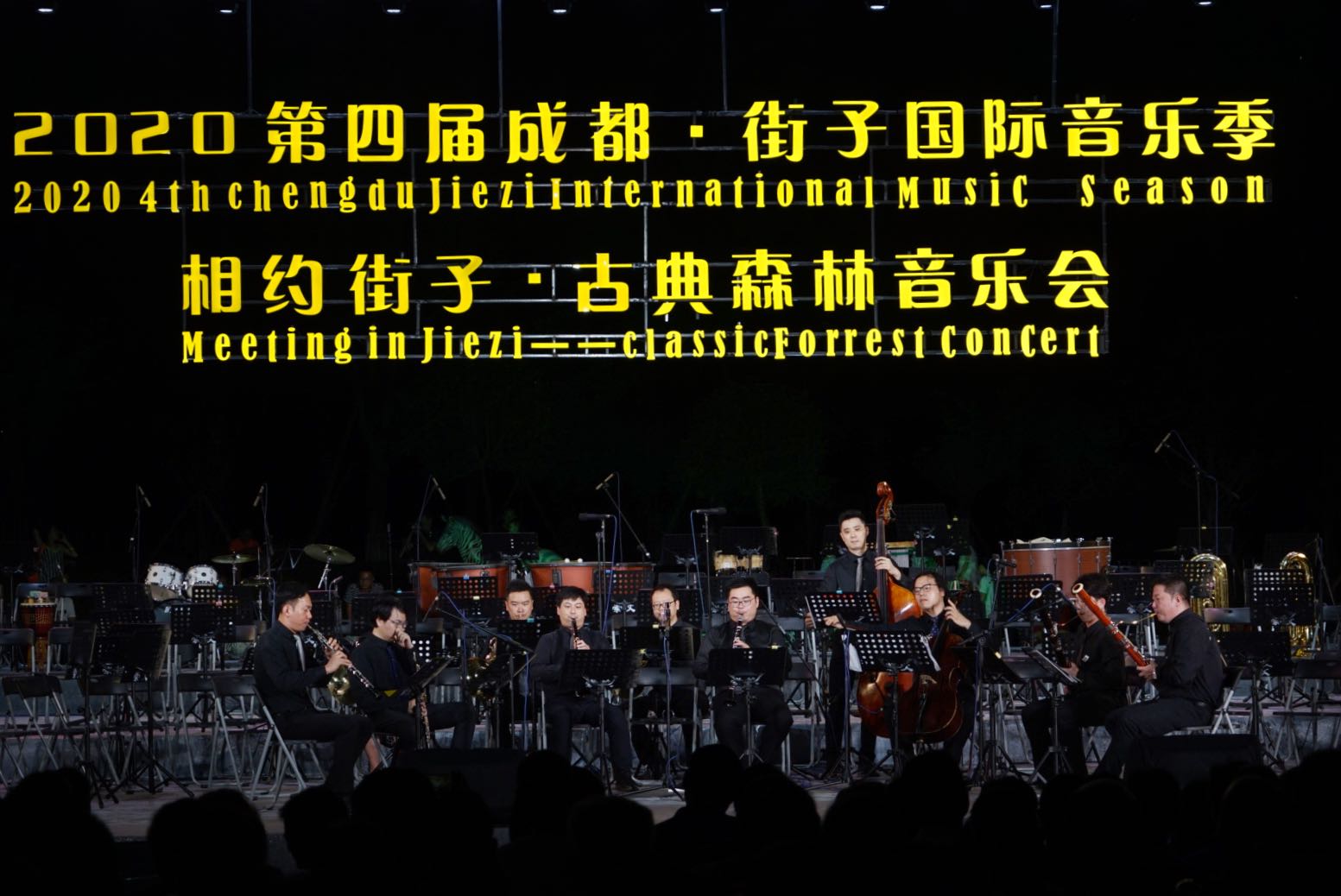 四川新闻网成都8月8日讯 8月7日晚, 由四川音乐学院、崇州市人民政府联合主办的“2020第四届成都·街子国际音乐季”暨“相约街子——古典森林音乐会”在“街子音乐小镇”奏响。音乐会上,四川音乐学院优秀中青年音乐家与四川青少年交响管乐团联袂为现场400名观众和通过网络直播在线上收看的广大音乐爱好者,奉献了一台高水平的古典音乐会。音乐会上演奏了钢琴协奏曲《黄河》、《自由探戈》、交响管乐《夏日桑巴》、《胡桃夹子——场景》 、《欢乐颂》、《墨西哥小号》、《拉德斯基进行曲》以及多首弦乐、木管室内乐经典作品。美国北卡罗莱纳州立大学格林斯堡音乐学院院长和优秀学生代表也在音乐会上,通过视频联线的方式,与音乐会现场进行互动。