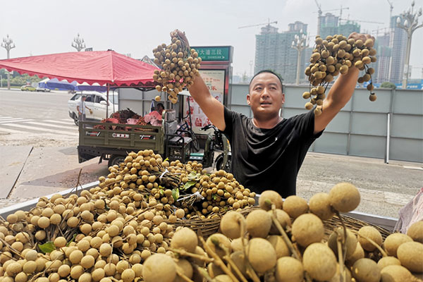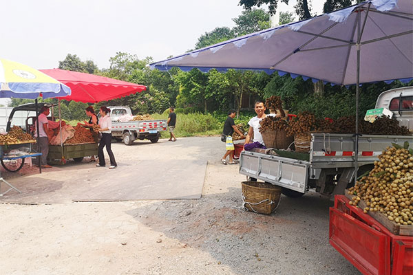 附近种植户把桂圆运到蜀泸大道三段售卖,希望能卖个好价钱。许亚琴 摄