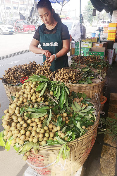 目前正值桂圆上市的时节,西南商贸城水果批发市场的张胜均每天凌晨三四点就要到门店,因为来自叙永、赤水等市内外的下游商家会前来拿货。通过他们,新鲜的泸州桂圆当天就能出现在当地的市场上。