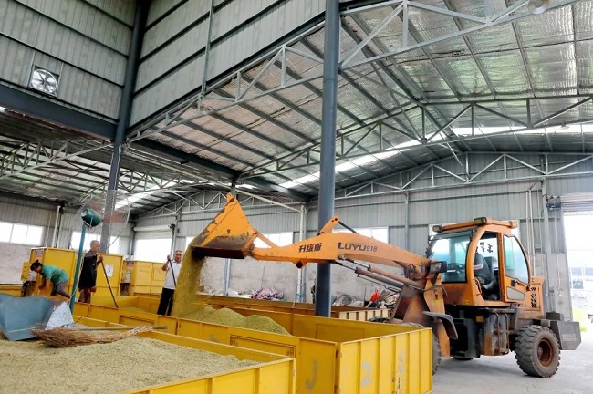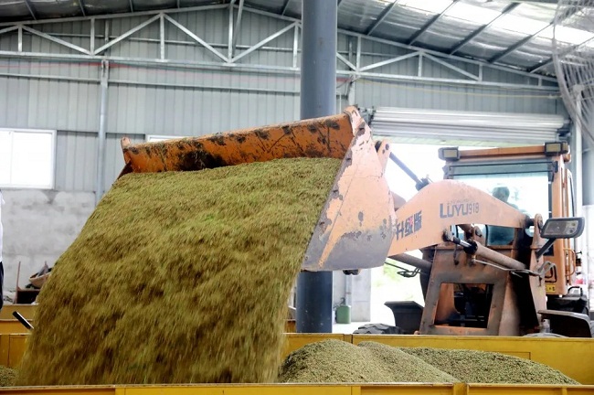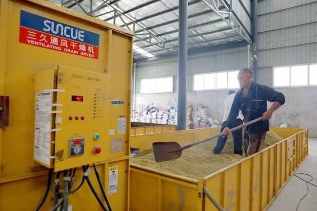 有经验的农户都知道,下雨天抢收回去的粮食在高温高湿的状态下也是很容易发芽的。为了解决这一问题,该水稻制种基地还建设了专门的烘干精选车间。抢收回来的制种水稻直接运至仓库,放进烘干设备中,只需24小时就能将制种稻谷的水分烘干,再进行后续的分选。