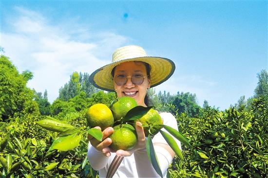 8月30日,记者来到四川省内江市隆昌市胡家镇的付家桥漏孔滩柑橘园看到,漫山遍野硕果累累,果皮黄绿相间的果实三四个、四五个地簇拥在一起,像一串串成熟的“大葡萄”,散发着阵阵橘香。不少市民穿梭其中,尽情体验采摘乐趣。