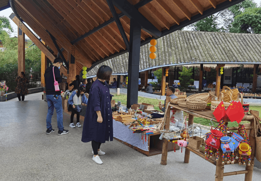 国庆期间,为了让游客零距离感受“非遗”魅力,由崇州市文化体育和旅游局和成都市非物质文化遗产保护中心主办,在道明镇竹艺村,集中开展了“品味天府手作、纵享非遗生活”主题非遗集市。