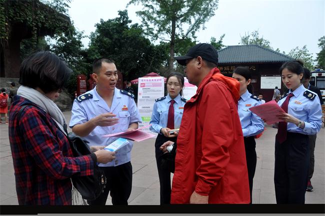 国庆期间,乐山税务干部到乐山大佛景区宣传税收优惠政策