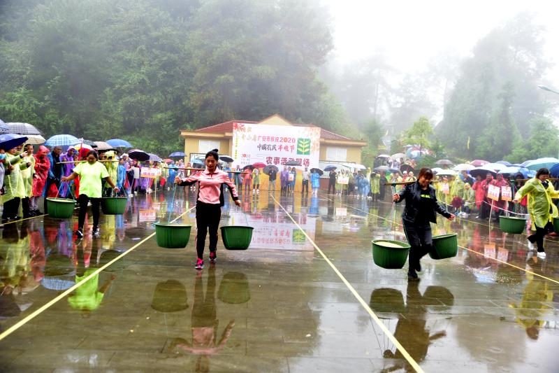 9月30日,2020年“ 中国农民丰收节”暨雅安市第一届“美丽乡村健康跑”农民体育活动在百丈镇解放村展开。千余名群众齐聚一堂,掰玉米、头顶运粮食等农民趣味运动会环节,让广大农民朋友感受到了丰收的喜悦与欢心。