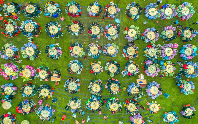 开幕式上,近千人汇集万寿村,在欢歌曼舞中,分享山村坝坝宴,品尝山水恩阳特色十大碗,共享丰收的喜悦。