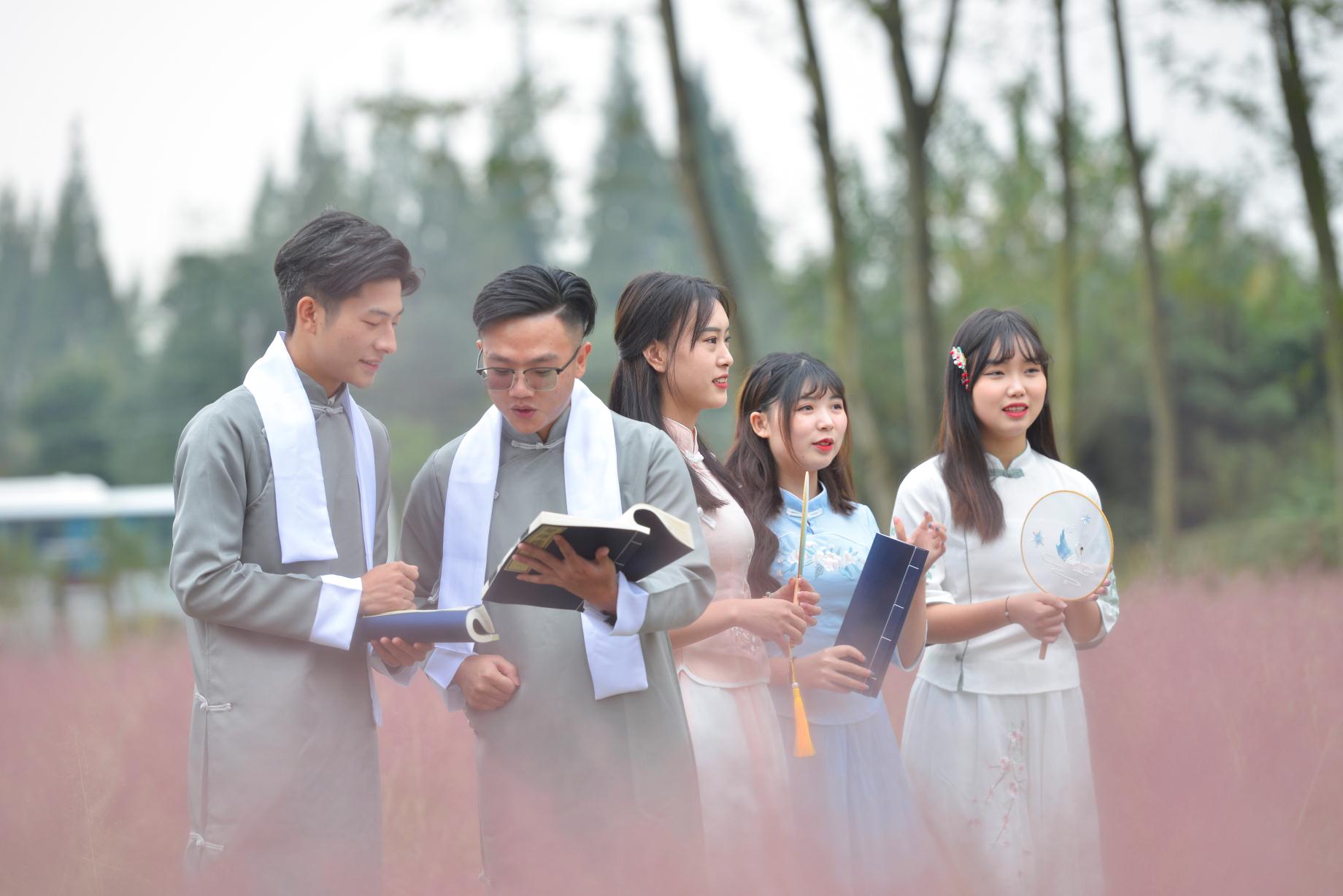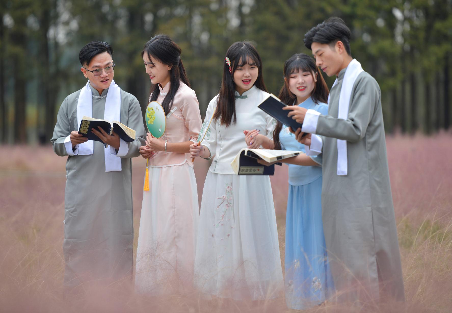 四川新闻网成都10月30日讯 粉黛乱子、高山流水、盆景环绕,一群身穿传统服饰的男女青年在此阅读,朗诵······