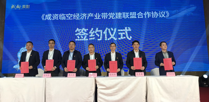 启动仪式上,简阳市委常委、组织部部长黄永忠发布了《成资临空经济产业带党建联盟》主要内容。并由成都市委组织部二级巡视员李铣,资阳市委组织部副部长、市委党建办主任、市委两新工委书记唐怀庄,成都市发改委党组成员、机关党委书记杨磊共同启动了党建联盟 。随后,成都东部新区、简阳市和资阳高新区、资阳临空经济区、雁江区、乐至县、安岳县共同签署了《成资临空经济产业带党建联盟合作协议》;资阳市临空经济区、简阳市临空经济产业园签署了《战略合作框架协议》,并发布了临空经济产业带党建联盟第一批“能力”与“机会”清单,这些清单包括基础设施建设、人才需求、项目合作、原料采购产业招商等,超过110项。
