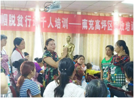 脱贫攻坚战打响后,我在政府的指导下,整合人力资源,免费给待岗兄弟姐妹和贫困妇女同胞做培训,帮助并带动他们一起创业就业。刚开始,家政服务行业并不被社会看好,许多家庭对家政服务不理解,甚至难以接受,许多从业者者本身对这份工作也抱有偏见。但我们的理念是“劳动没有贵贱之分,为人民服务都是光荣的。”