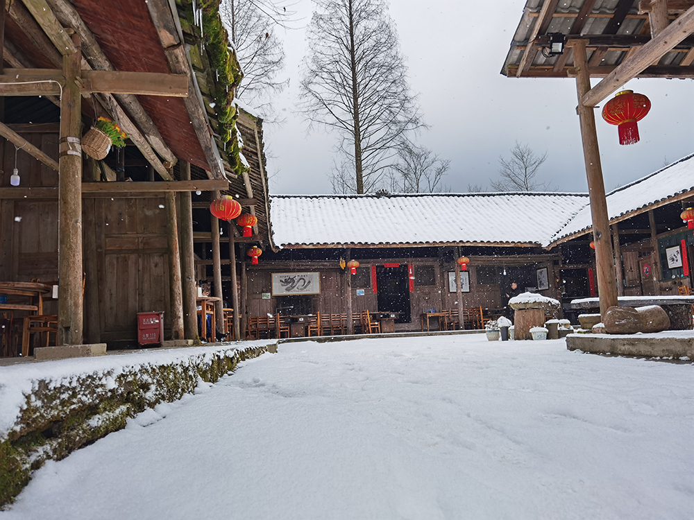 今日,位于崇州市西北群山之麓的街子古镇白雪纷飞,与浓郁的川西风味相得益彰、别具特色;鸡冠山随山赋形,遇雪凝魂,飞雪覆盖之下更显水景奇美,同时也迎来天然高山滑雪、滑草场的时节;罨画池以梅花和菱花烟柳为胜,皑皑白雪点缀之下更添趣味……