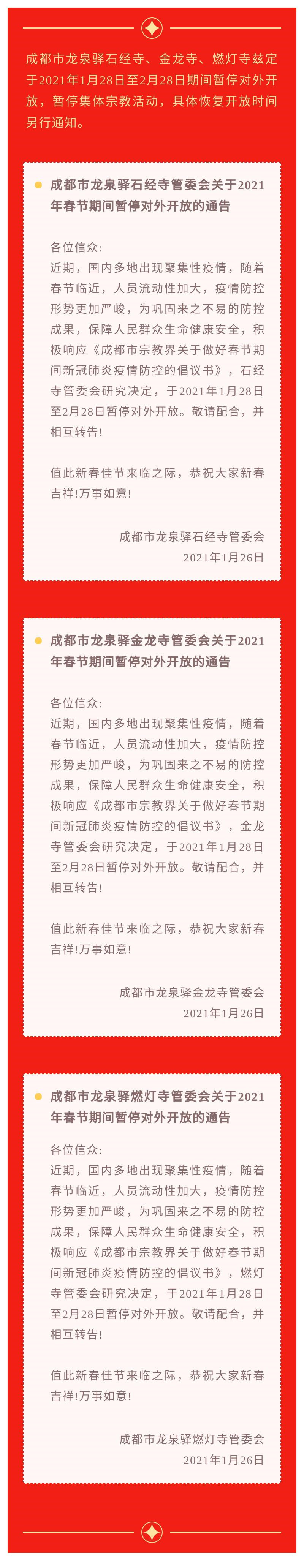 石经寺、金龙寺、燃灯寺1月28日起暂停开放
