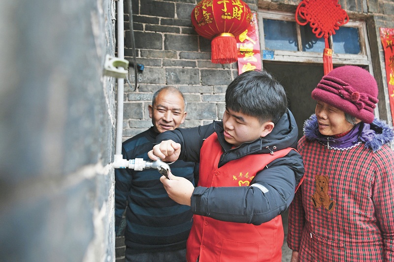 志愿者帮留守老人维修水龙头。
