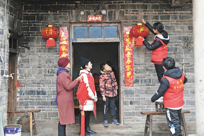 春节即将来临,前锋区青年志愿者带着大红灯笼、中国结、春联、年货以及一片爱心,来到代市镇龙王村、长五村,看望慰问因疫情不能返乡过年的在外务工人员的父母和子女,为留守老人、留守儿童送去新春祝福。