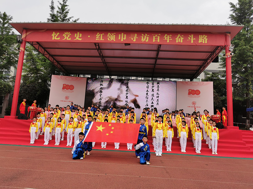 四川新闻网成都4月23日讯 4月23日,由崇州市精神文明办公室、崇州市新时代文明实践中心、崇州市教育局主办“崇州市乡村学校少年宫新时代文明实践基地”暨‘忆党史·红领巾寻访百年奋斗路’项目启动仪式”在崇州市街子学校举行。本次活动紧紧围绕庆祝中国共产党成立100周年这条主线,依托新时代文明实践中心,以乡村学校少年宫为抓手,整合基层文化阵地资源,面向农村未成年人开展文明实践活动,扎实推进基层未成年人思想道德建设。