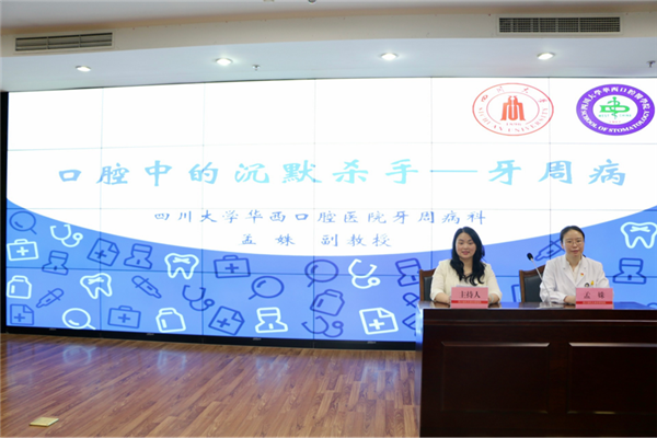 活动现场,四川大学华西口腔医院牙周科党支部孟姝医师以“认识口腔中的沉默杀手”为主题,讲授如何通过日常的定期口腔卫生维护,防止牙齿松动脱落,尽可能长的保全全口牙齿,让天然牙尽可能久的行使功能。