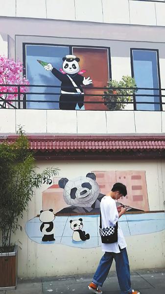 近日,成都市通过大熊猫等本土特色文化资源营造社区环境,不断增强居民幸福感与融合度。图为5月6日,成都高新区兴蓉社区围墙上的大熊猫及成都地标建筑等彩绘。 四川日报全媒体记者 衡昌辉 摄