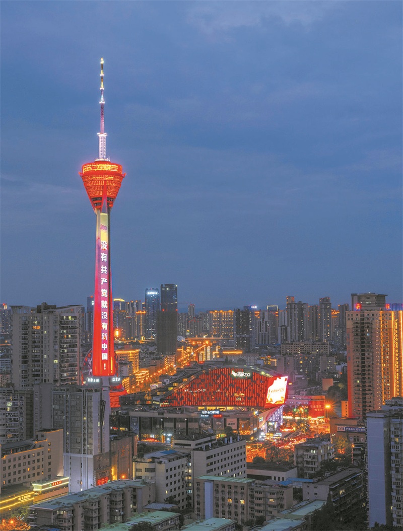 “七一”临近,蓉城大地,“党的盛典人民的节日”氛围浓烈。大街小巷,鲜艳的五星红旗迎风飘扬,美丽的鲜花竞相绽放;公交、地铁、公共场所电子大屏等被形式新颖的宣传标语、电子宣传海报装点一新;从城市到乡村,一场场文艺汇演用欢歌乐舞迎接党的百年华诞,讴歌党的丰功伟绩,唱响为民心声,凝聚奋进力量;夜幕降临,华灯初上,地标建筑变身“画布”,天府熊猫塔、环球中心等多个地标开启盛大的“灯光秀”,“没有共产党就没有新中国”“成都儿女心向党”“当好主人翁建功新时代”……轮番在建筑物上显示的句子,向市民展示了党的光辉历程,更展现了成都创造幸福美好新生活的主动作为和责任担当,是成都人民对中国共产党成立100周年的深情告白。本报记者赵一