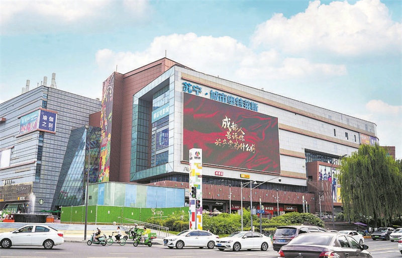 6月29日,位于天府大道的苏宁广场户外大屏上,正在播放成都日报社为庆祝建党百年而制作的大型中英双语系列街访“成都人告诉你共产党为什么好”本报记者彭戈刘钊摄