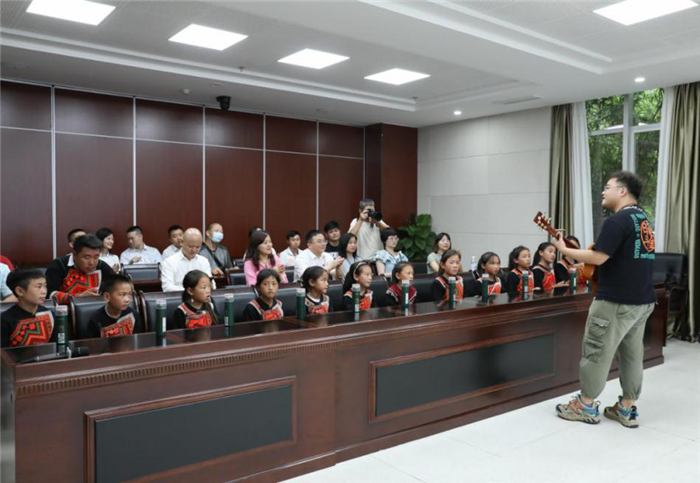 现场活动中,主持人邀请每位小朋友依次登台,介绍自己的名字、年龄、兴趣爱好等基本情况。大家共同聆听了蜀道实业公司一名同样来自大凉山的职工讲述他的成长经历、求学生涯和心路历程,勉励孩子们认真学习、开拓眼界,努力走出大山、拥抱世界。随后,公司组织开展了趣味小游戏和歌曲联唱,师生和家长代表们一起参与、其乐融融,在欢快愉悦的氛围中将活动推向高潮。