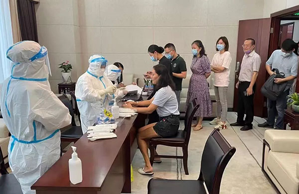 全员排查登记,对14 天内有国内中高风险地区旅居史和相关病例密切联系员工,及时向当地社区报备,按要求落实核酸检测、隔离等措施。清理员工疫苗接种情况,及时安排未接种的无禁忌人员接种疫苗,确保应接尽接,组织全体在岗员工进行核酸检测。暂停员工休假、赴外培训、出差等,已赴外人员及时联系召回。加强来访人员、劳务人员、司机等外部相关人员管理,减少密切接触;动态掌握员工流动情况及健康状况,每日测量体温,报告健康码变化情况,发现异常第一时间报告并采取相应防控措施,坚决杜绝迟报、谎报、瞒报、漏报。