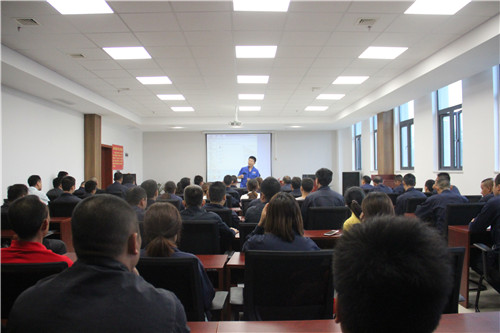 眉山蓉光董事长在员工培训会上发言 蔡欣 摄