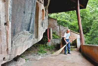 8月的成都市龙泉驿区山泉镇,满目苍翠,山路蜿蜒盘旋。顺着通往山顶的一条小路,上行不到一公里,就可以看到一座小庙——石佛寺。全国重点文物保护单位“北周文王碑”藏身在这里已有1400多年。78岁的肖太发老人记得很清楚,到今年的8月23日,他守护石碑和附近摩崖造像文物正好53年。
