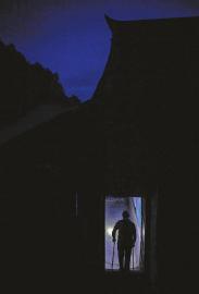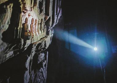 8月19日晚,月光晒在石佛寺中,哒哒的拄拐声从院内传来,肖太发老人跟往常一样,拄着拐杖,戴着头灯开始了巡查工作。去年老人在打扫卫生时不小心伤了右脚,今年刚有好转,他就拄着拐杖开始了巡护。每天早晚各巡查一遍石佛寺,是他几十年来雷打不动的习惯。