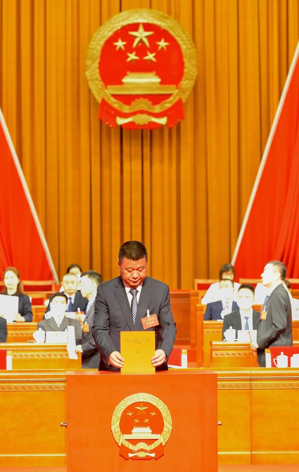 大会选举饶程为崇州市人民政府市长。崇州市人大常委会主任易孔盛向饶程颁发当选证书,饶程进行了宪法宣誓。