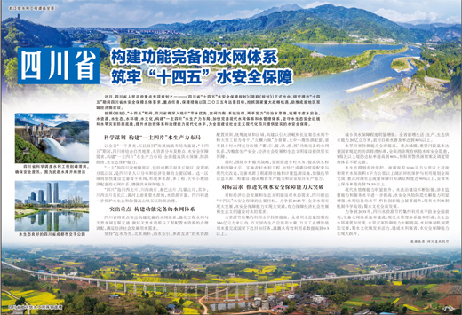 四川省将重点突出构建完备的水网体系,强化工程水网与天然水网互联互通,做好天然水资源与工程配置水资源的合理调配,满足经济社会发展用水需求。