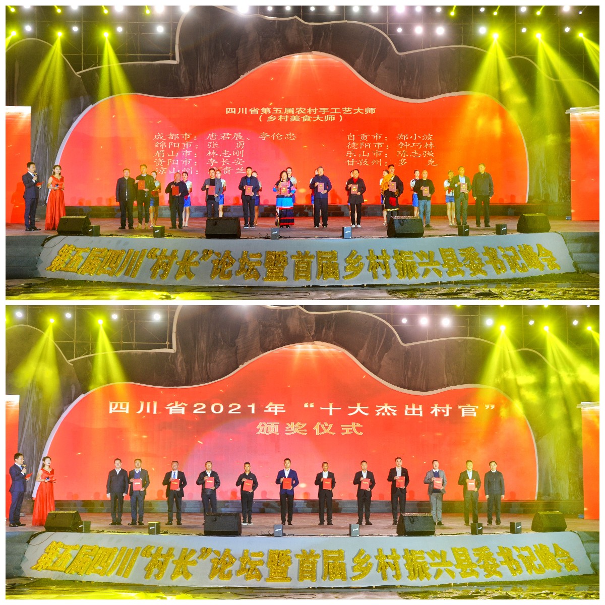 晚会前的颁奖仪式上,在2021年杰出村官、四川省第五届农村手工艺大师评选活动涌现出的段作其、牟卫兴、叶浩钧、徐川、张正华、漆建、刘念、谢召礼、徐伟、陈永强全省10大杰出村官,唐君展、李伦忠、郑小波、张勇、钟巧林、林志刚、陈志强、李长安、多克、潘贵兰等10名农村手工艺大师登台接受了表彰。这群撑起乡村振兴的“顶梁柱”,决胜脱贫攻坚的“急先锋”和为民谋幸福的“领头雁”,推动乡村振兴战略落地落实。